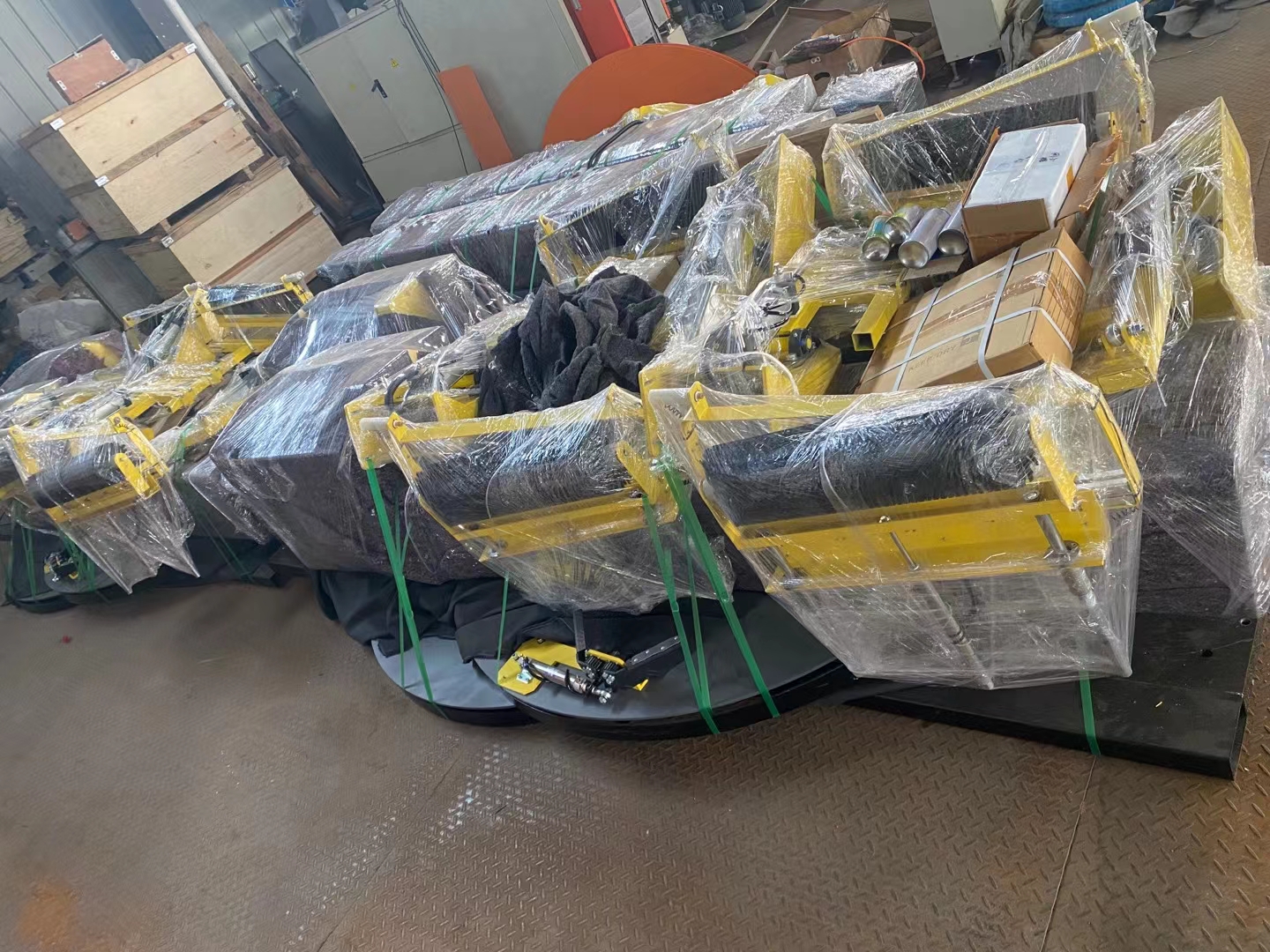 單機(jī)全自動(dòng)上斷膜纏繞機(jī)打包完畢,待裝貨柜,去國(guó)外